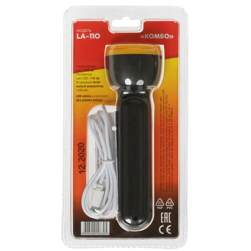 Фонарь Яркий луч "Комбо", ручной, LA-110, 100 Лм, COB, 110 Лм, аккумуляторный, встроенная зарядка (4606400106395)
