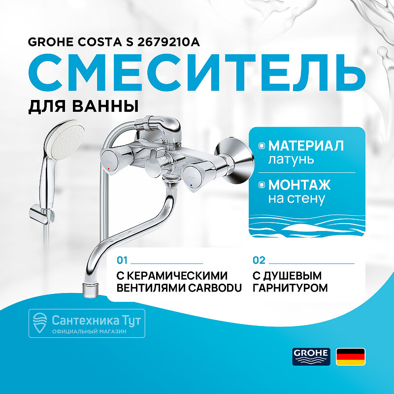 Смеситель для ванны и душа GROHE COSTA 2679210A с душевым гарнитуром, хром