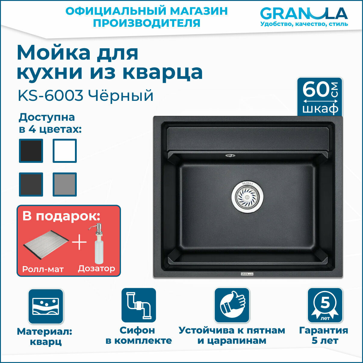 СохранитьКухонная мойка GRANULA Kitchen Space в комплекте с Ролл-мат и дозатором KS-6003 черный интересное: