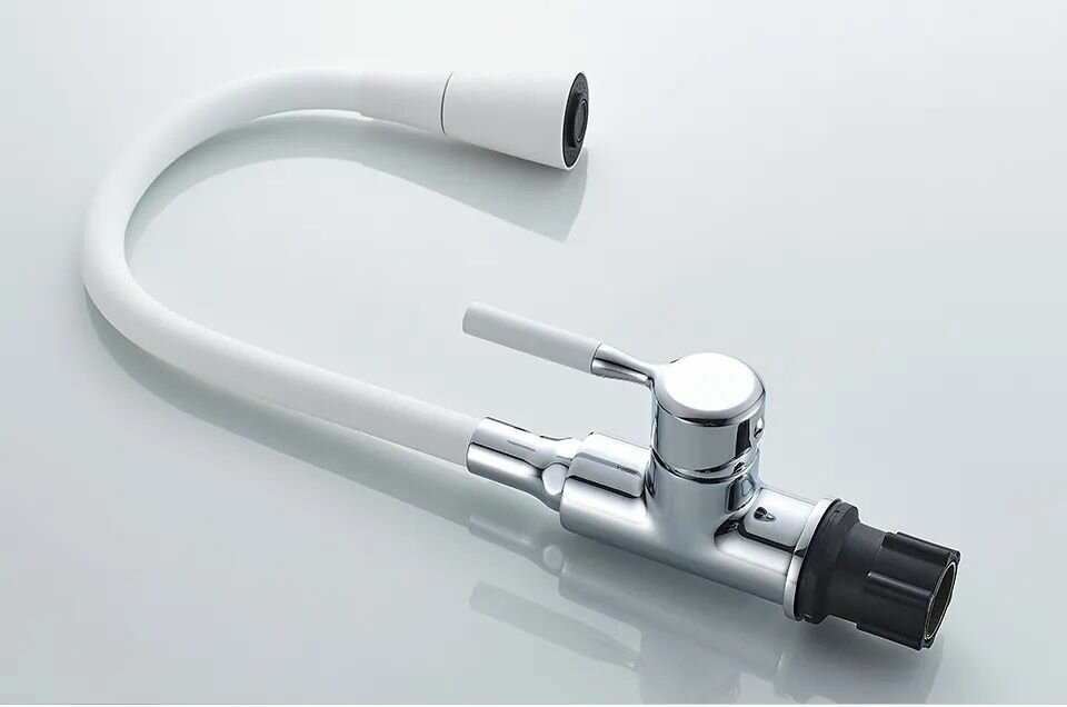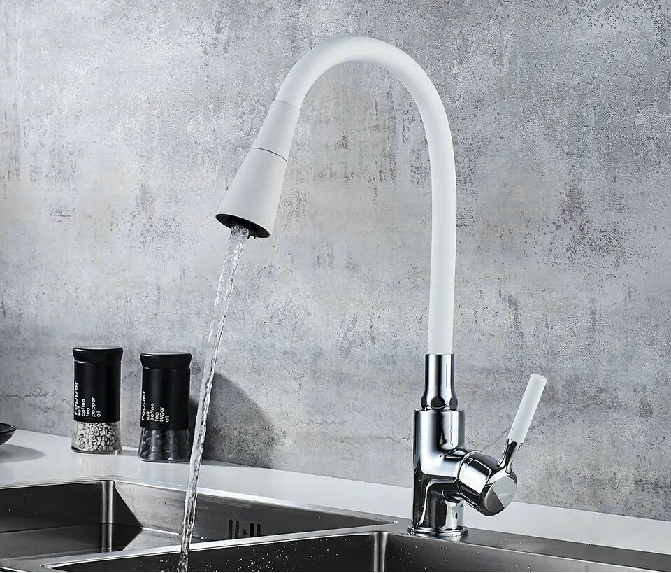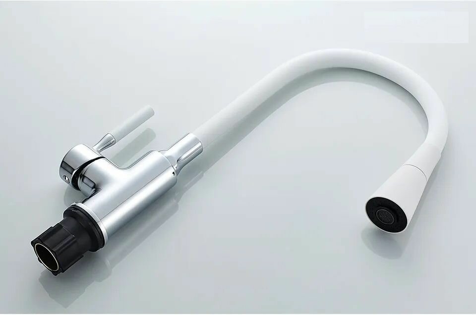 Смеситель кухонный с гибким силиконовым изливом белый A9890G-1