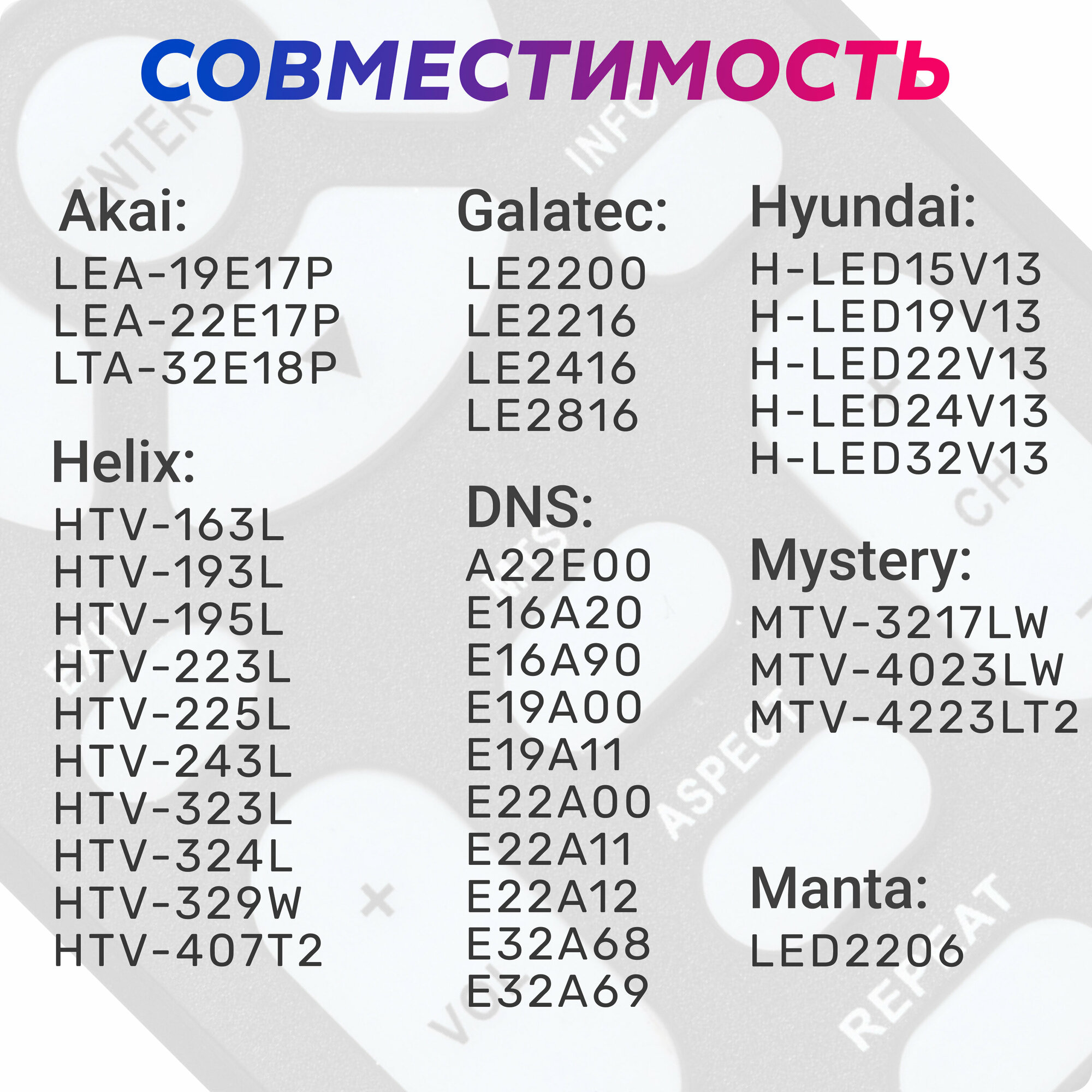 Пульт HUAYU CX-507, HYUNDAI H-LED19V13, HELIX для телевизора AKAI интересное:
