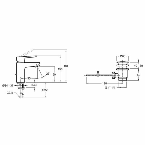 Смеситель Jacob Delafon Oscar E29842-CP для раковины с донным клапаном