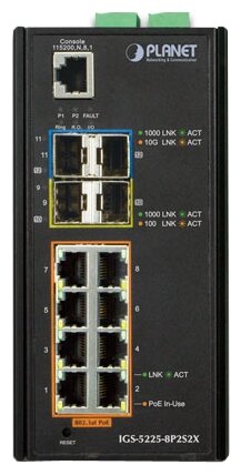 Промышленный управляемый коммутатор L2+/L4 PLANET IGS-5225-8P2S2X 8-Port 1000T 802.3at PoE+ 2-port 100/1000X SFP + 2-port 10G SFP+ Full Managed Switch
