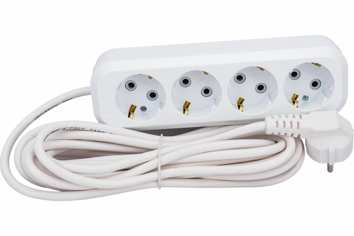 Удлинитель бытовой 4 гнезда, 5 м, ПВС, 3х1 мм², с заземлением, UNIVersal, Е-304, 9631982 интересное: