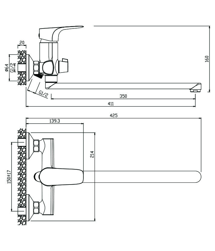 | Длина излива | 350 мм |
