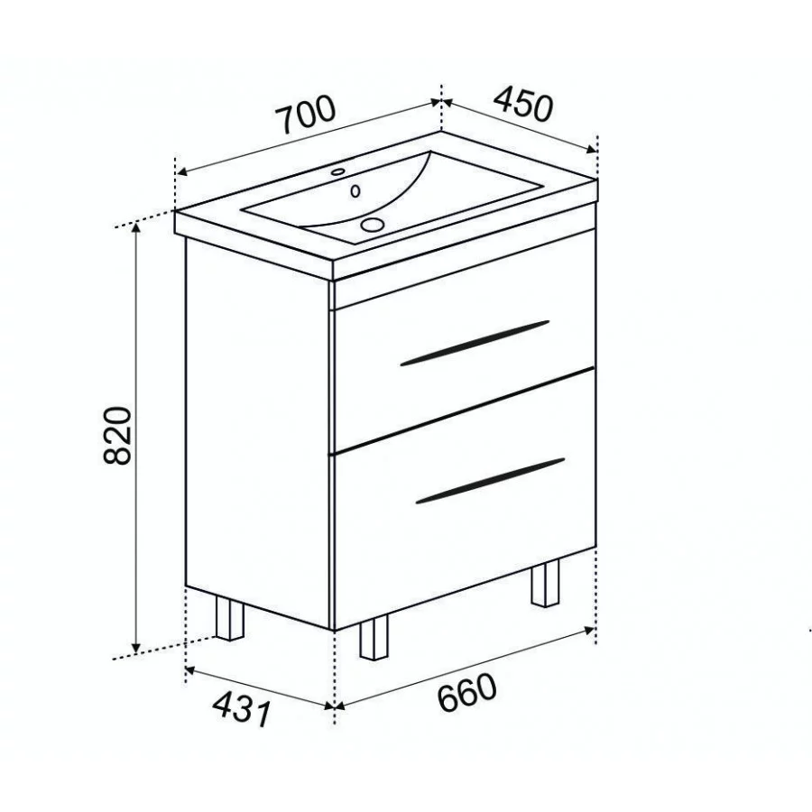 Тумба рокард 70 2 ящика напольная под умывальник Como 70