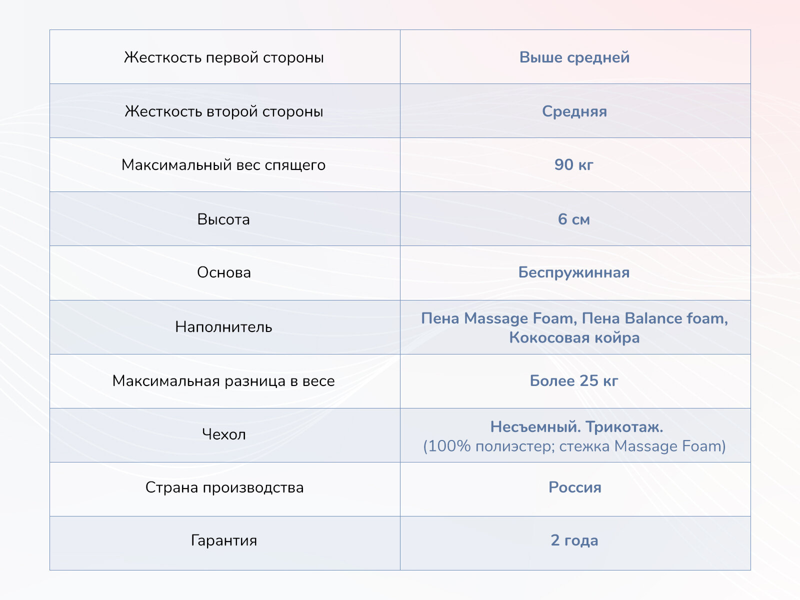 | Отзыв: | Заказывали через интернет, остались довольны, хотя покупали пальцем в небо, оказалось, что по характеристикам модель неплохая. Цена нормальная. Жесткость средняя с обеих сторон, спать нравится. |