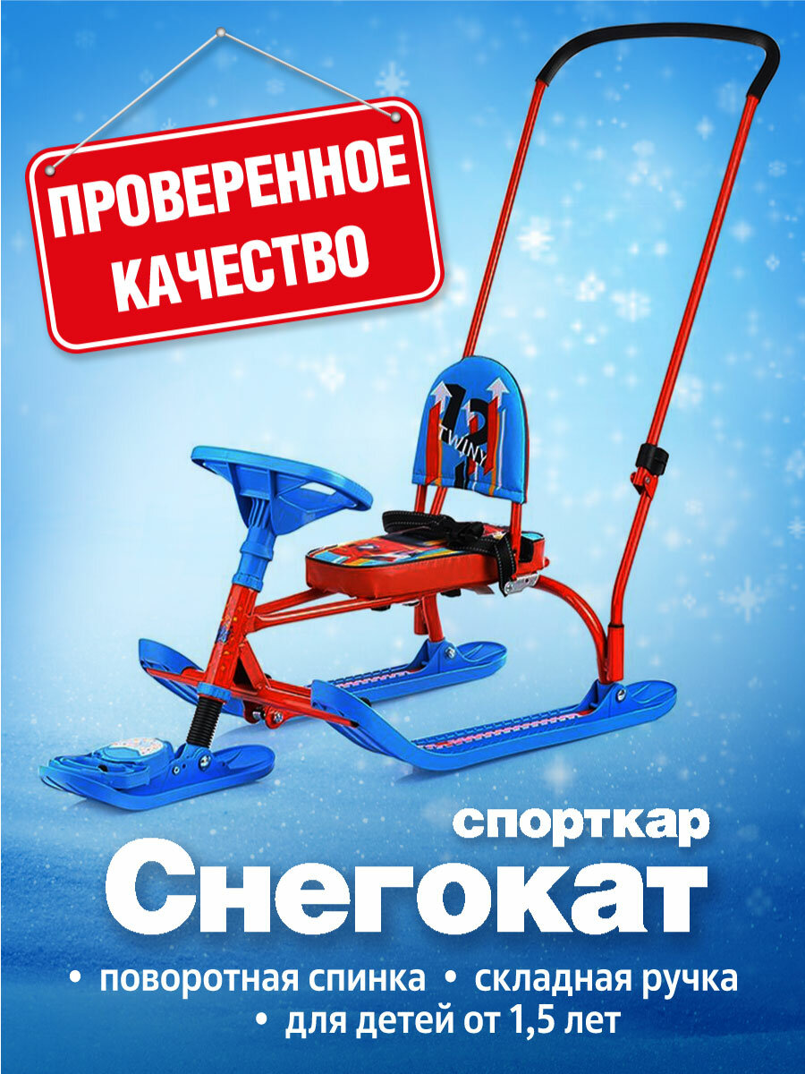Снегокат детский Ника "Twiny 2+ Sportcar", спинка и ручка, цвет красно-голубой