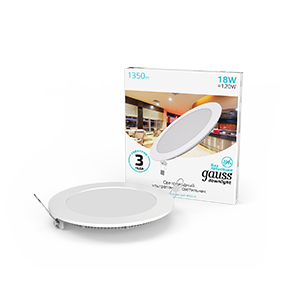Встраиваемый светильник Gauss ультратонкий круглый IP20 18W,225х22, 210, 4000K 1350лм 1/20