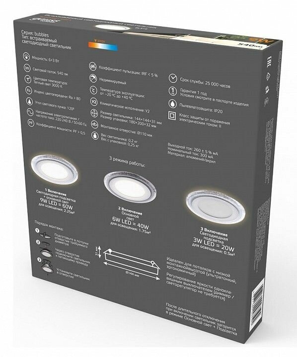 Встраиваемый светильник Gauss Backlight Bubbles BL316 интересное: