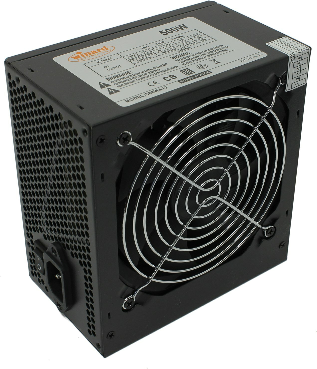 SuperPower Б питания Winard 500W 500WA12 ATX, 12cm fan, 20+4pin +4Pin, 2 SATA, 1 FDD, 4 IDE