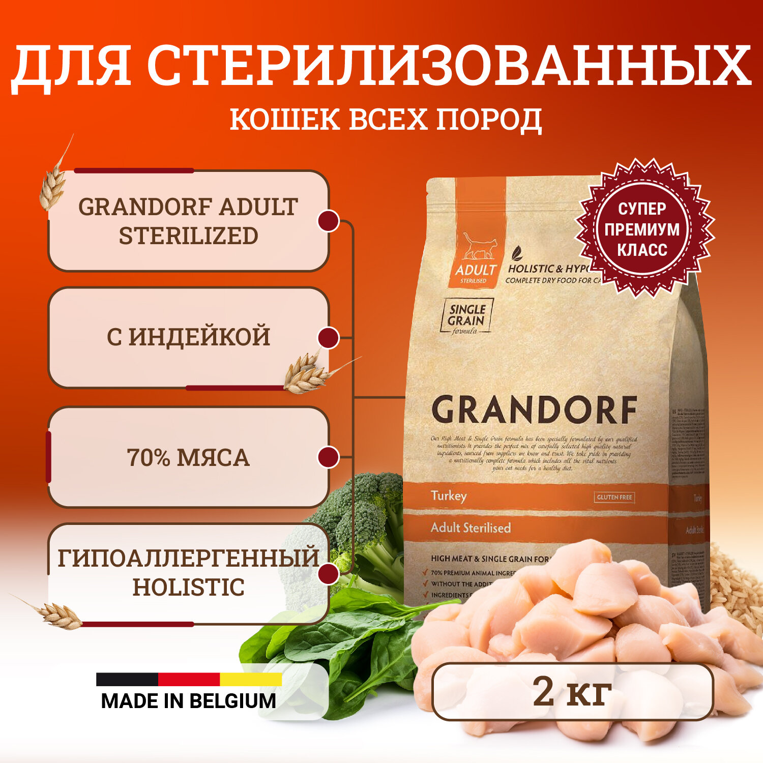 Купить GRANDORF CAT Turkey STERILISED (Индейка для стерилизованных кошек) (2 кг)