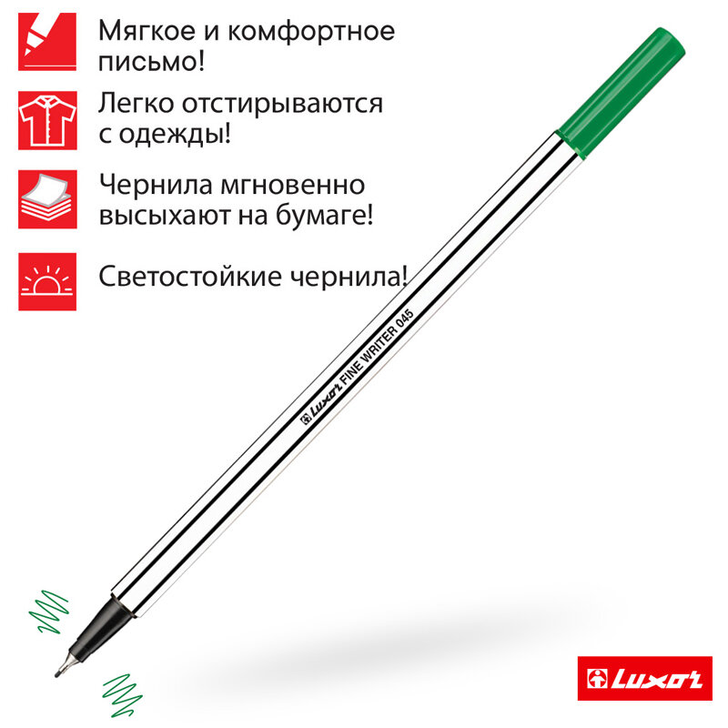 Ручка капиллярная Luxor "Fine Writer 045" зеленая, 0,8мм - 24 шт. интересное: