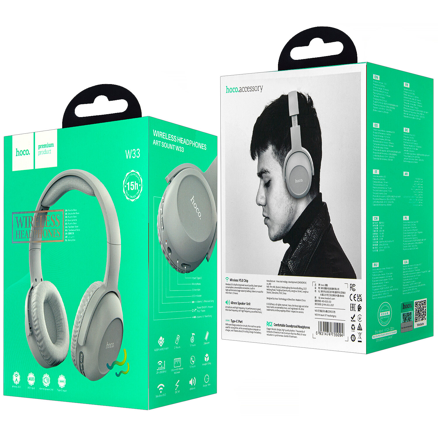 HOCO (6931474755094) W33 ART SOUNT серый (Наушники)