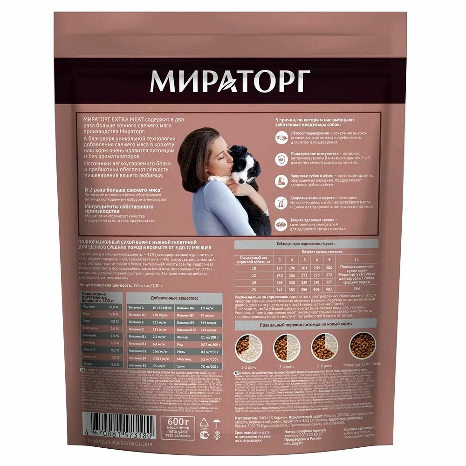 Сухой корм мираторг EXTRA MEAT для щенков средних пород с нежной телятиной (0,6 кг)