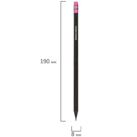 Карандаш чернографитный BRAUBERG, 1 шт., "Black Wood", НВ, с ластиком ассорти, черное дерево, заточенный, 180629 интересное: