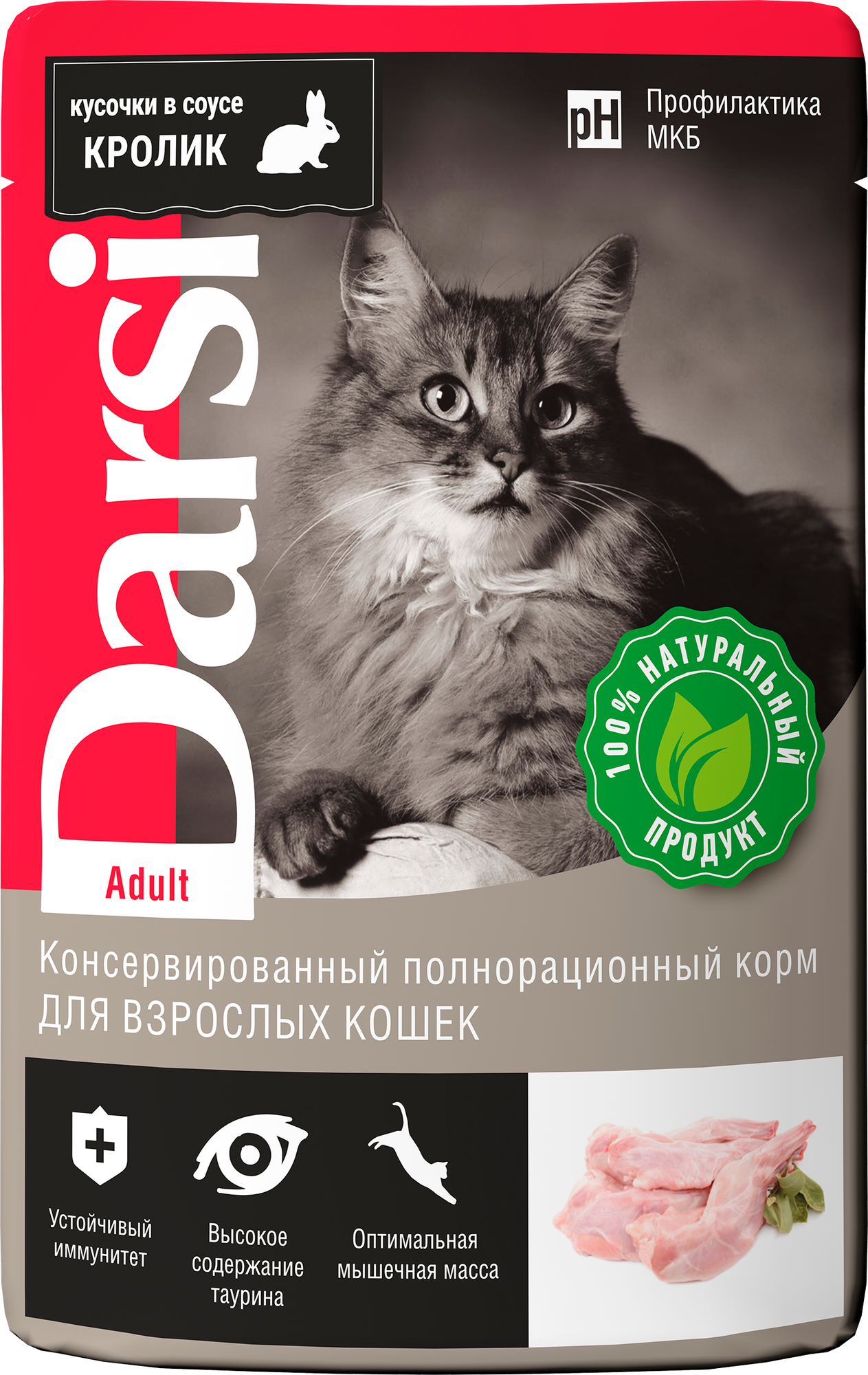 Влажный корм для кошек Darsi Adult, профилактика МКБ, с кроликом 32 шт. х 85 г (кусочки в соусе)