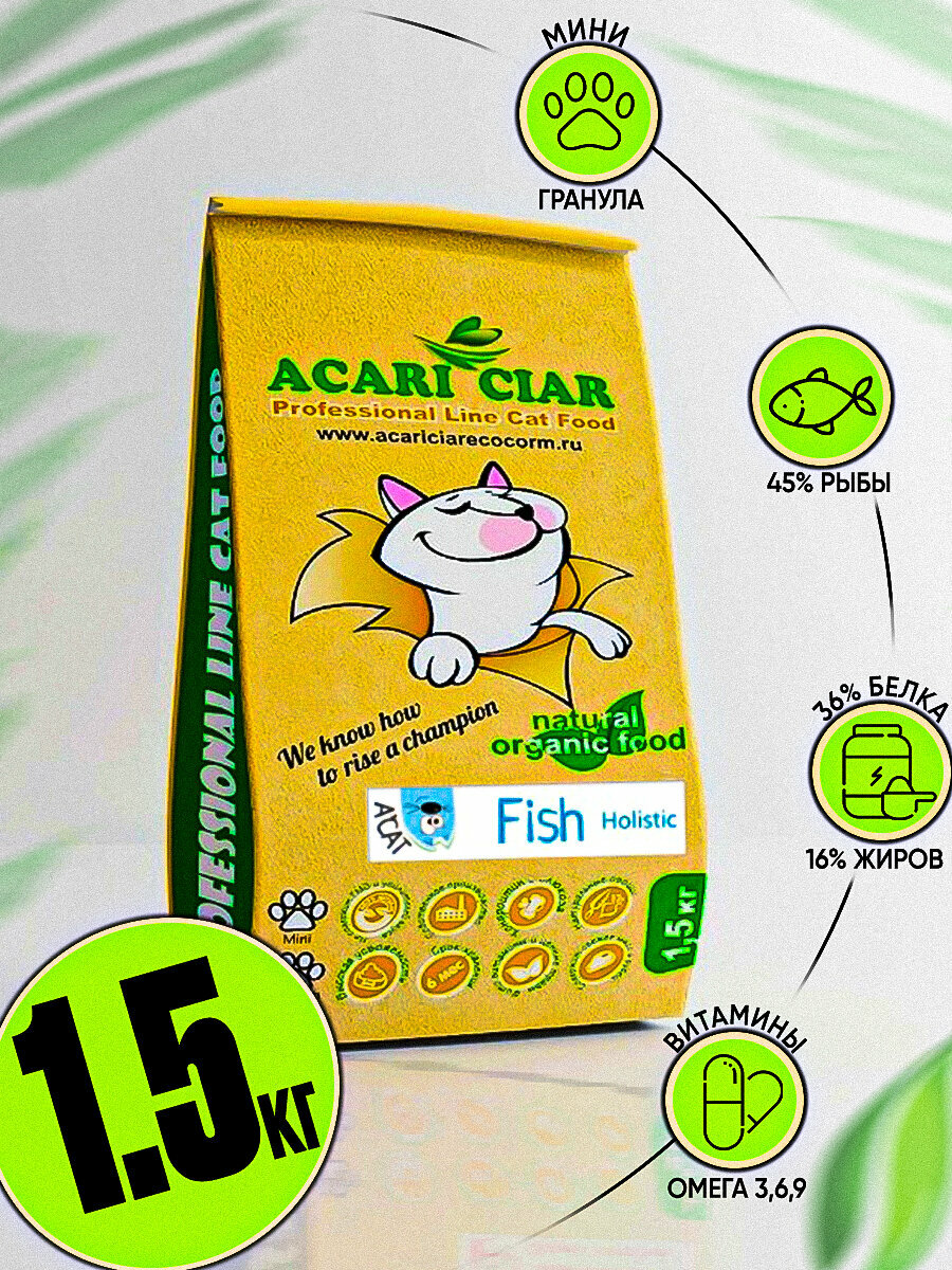 Купить Сухой корм Acari Ciar A'Cat Fish Holistic 1.5 кг Рыба для кошек Акари Киар