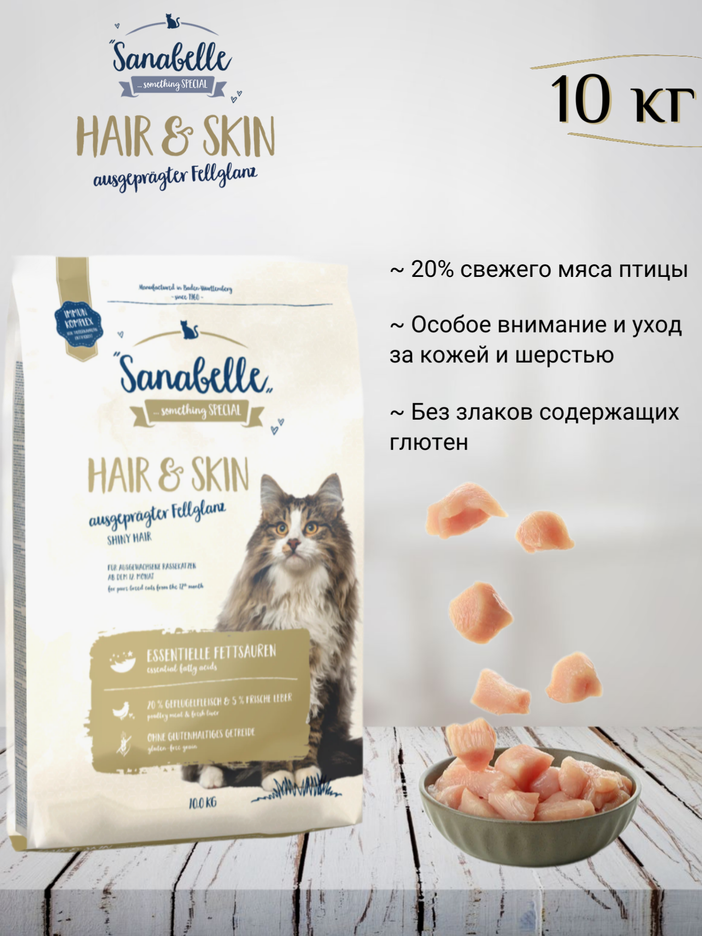 Сухой корм для кошек Sanabelle для здоровья кожи и блеска шерсти 10 кг