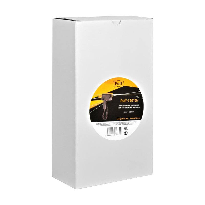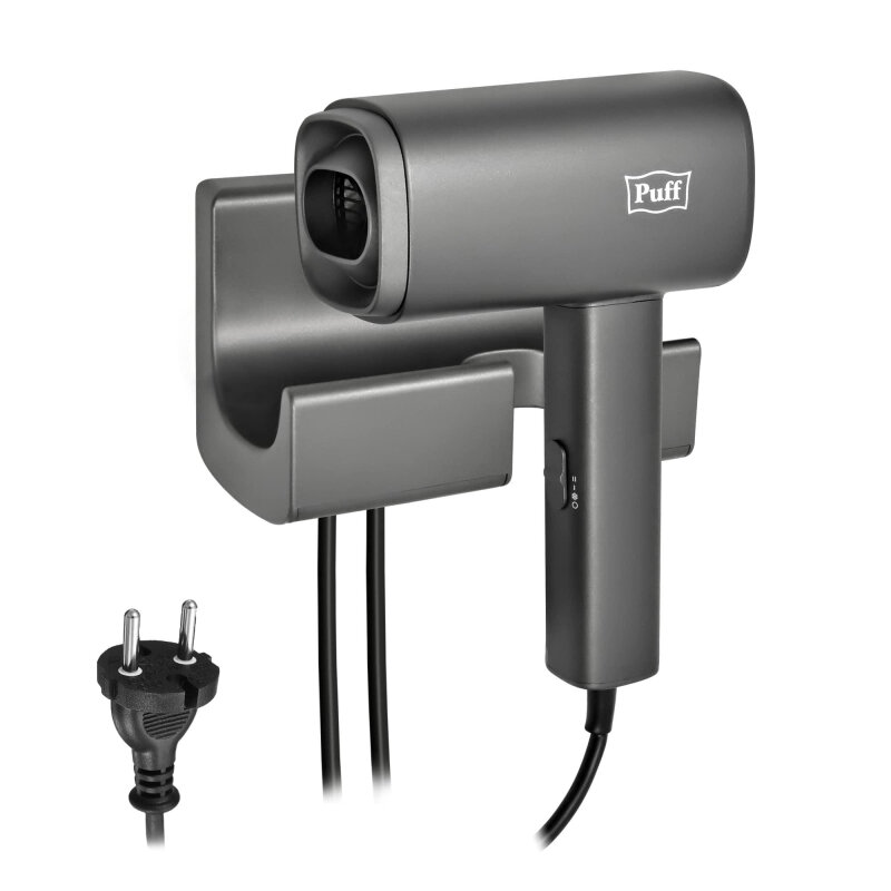 Puff Фен для волос настенный Puff-1601Gr, серый матовый, 1600 Вт