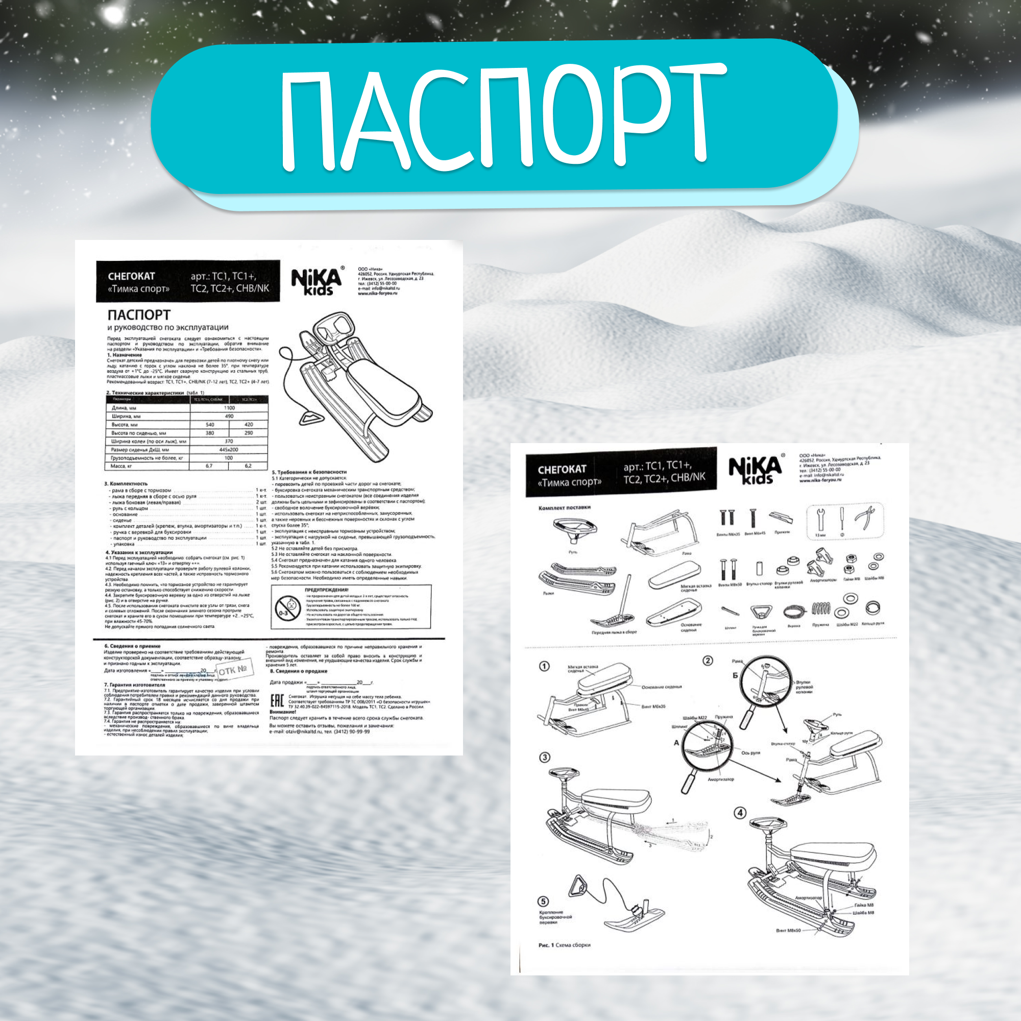 Снегокат Nika TWINY 2 Спортивный