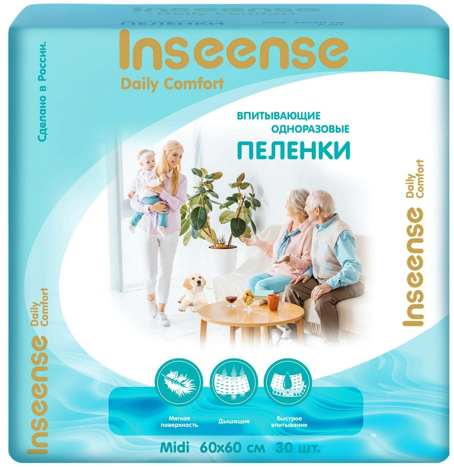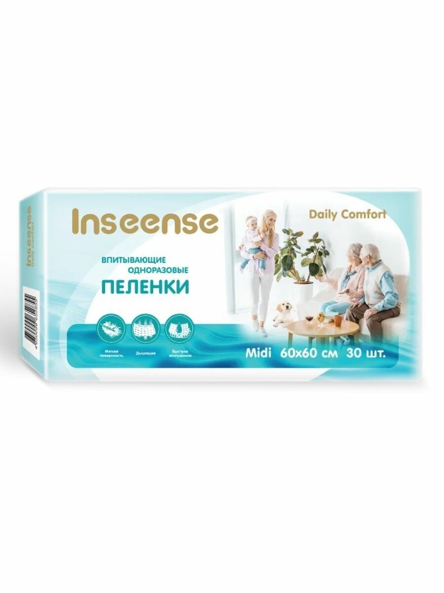 INSEENSE Впитывающие Пелёнки Daily Comfort Одноразовые 60х60см 665мл, 30 шт