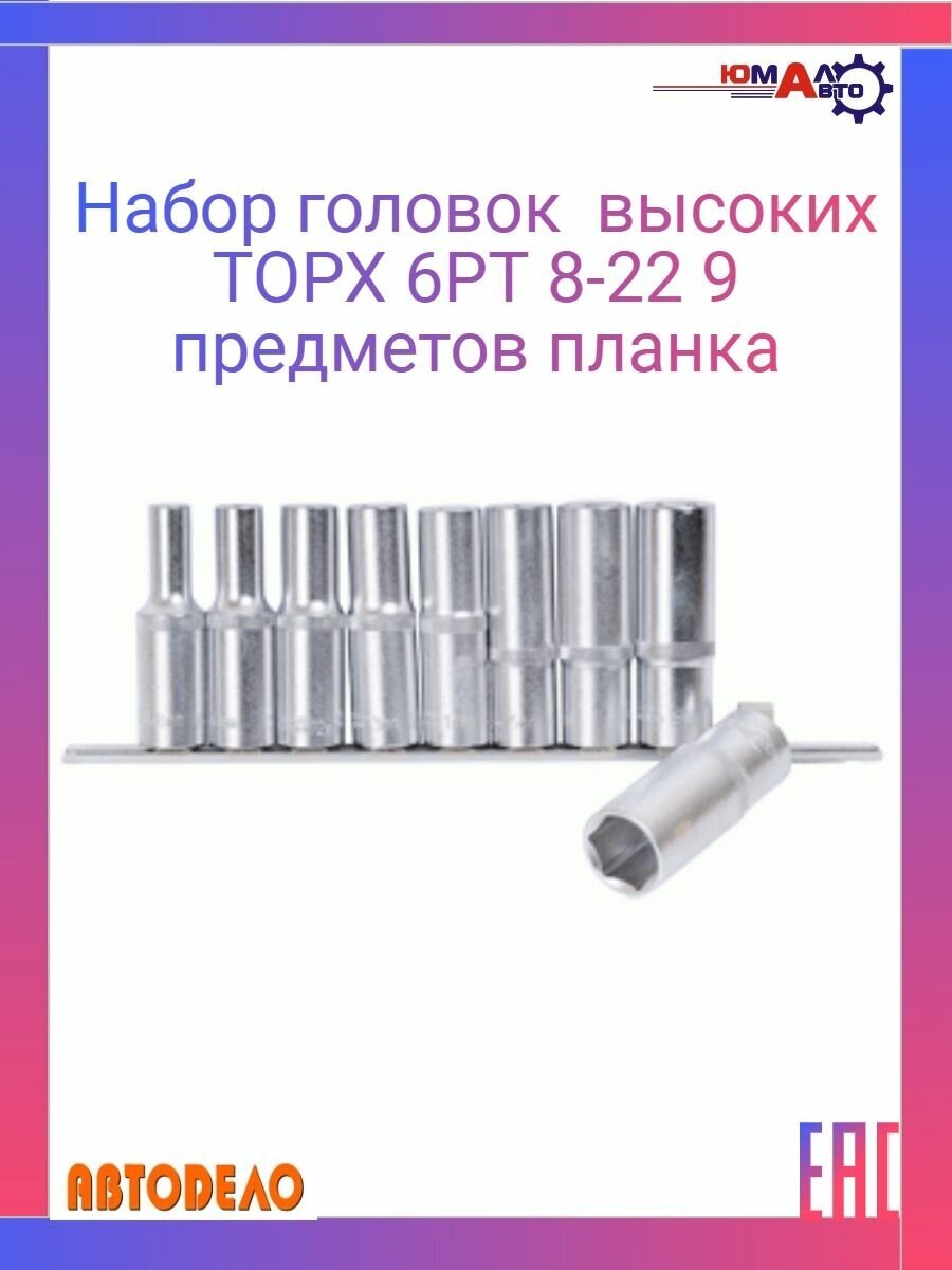 Набор головок высоких 9пр 6РТ, 8-22ммпланка АвтоDело 39836