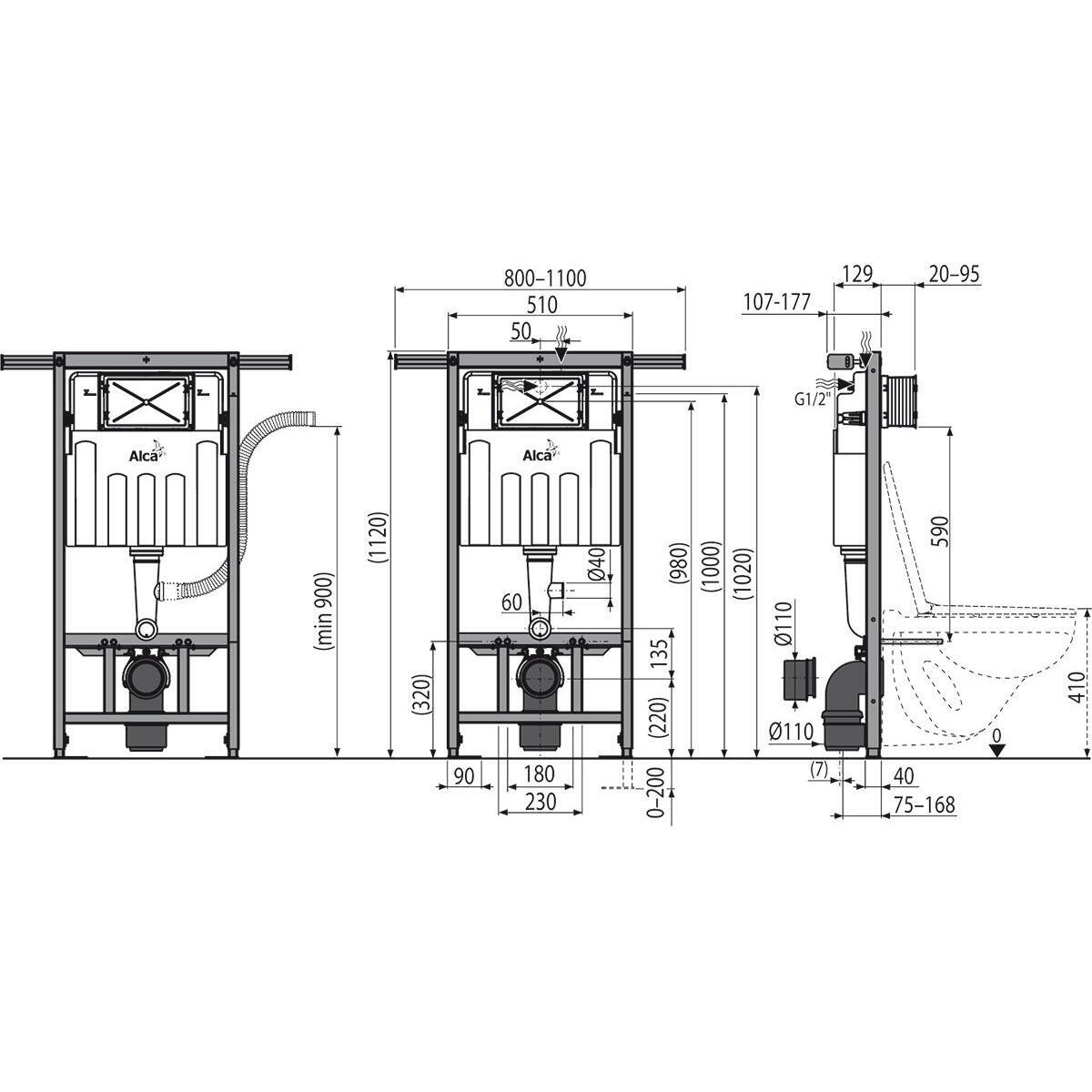 Система инсталляции AlcaPlast Jadromodul AM102/1120V Jadromodul с возможностью вентиляции