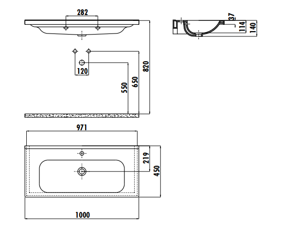 | Расположение отверстия под смеситель | в центре |