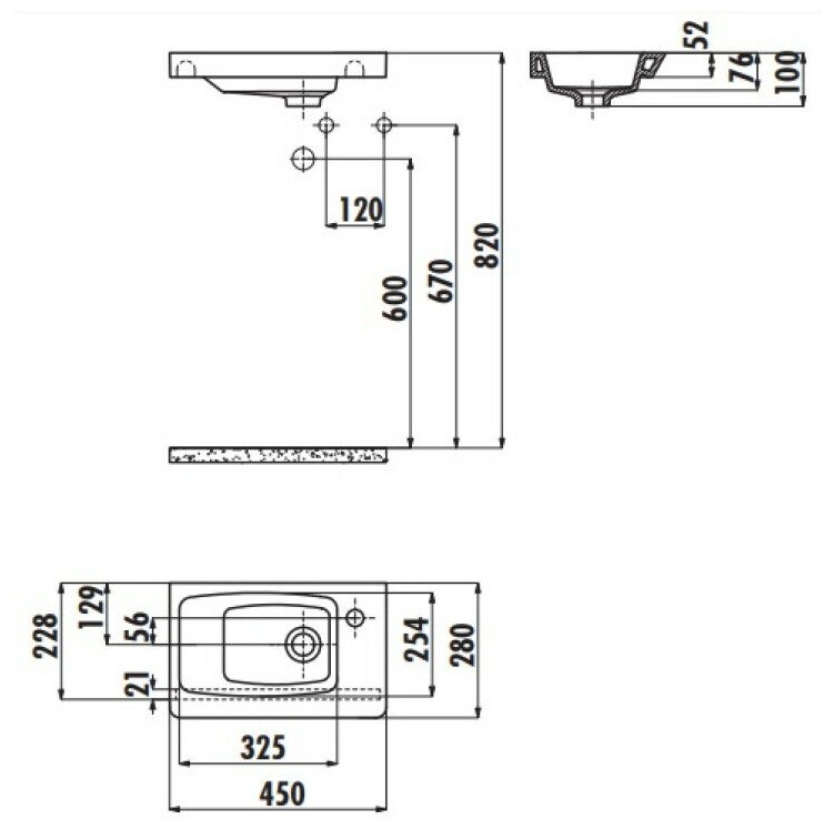 | Расположение размеченного отверстия под смеситель | справа |