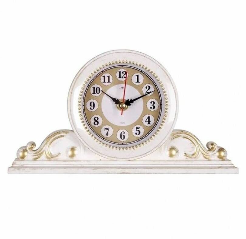 Купить Часы настольные Рубин Классика белый с золотом, для прихожей, спальни, детской, кварцевый механизм с плавным ходом, арабские цифры, размер 26x14 см