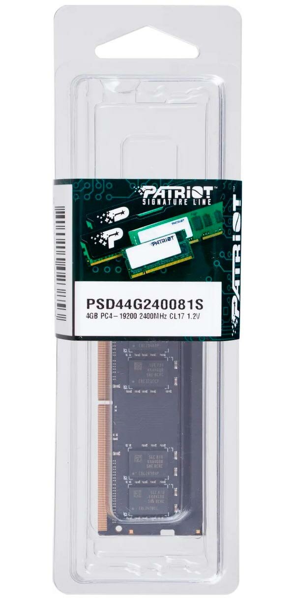 Модуль памяти SODIMM DDR4 4GB Patriot Memory PSD44G240081S PC4-19200 2400MHz CL17 1.2V SR RTL