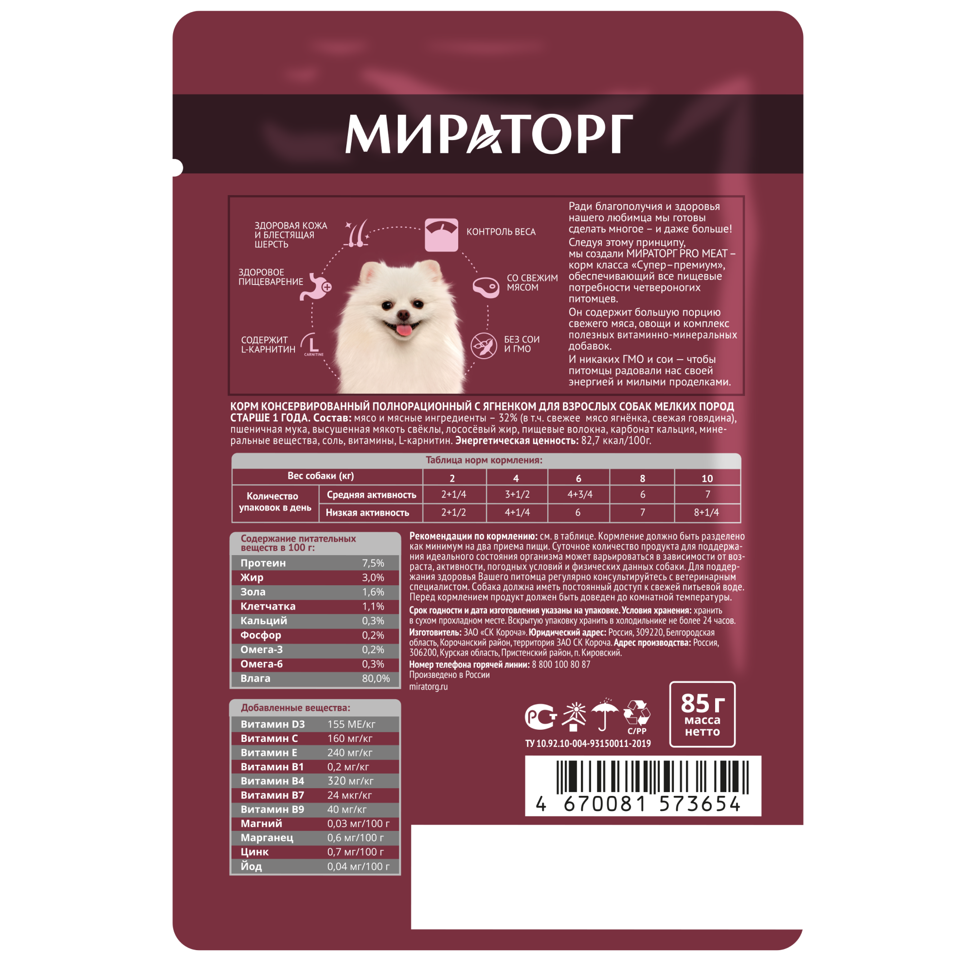 Ниже Вы можете прочитать отзывы на Корм влажный Мираторг Pro Meat для собак мелких пород со свежим мясом ягнёнка 24 шт по 85гр, ознакомится с подробными характеристиками, посмотреть интересные обзоры и фотографии на Корм влажный Мираторг Pro Meat для собак мелких пород со свежим мясом ягнёнка 24 шт по 85гр.