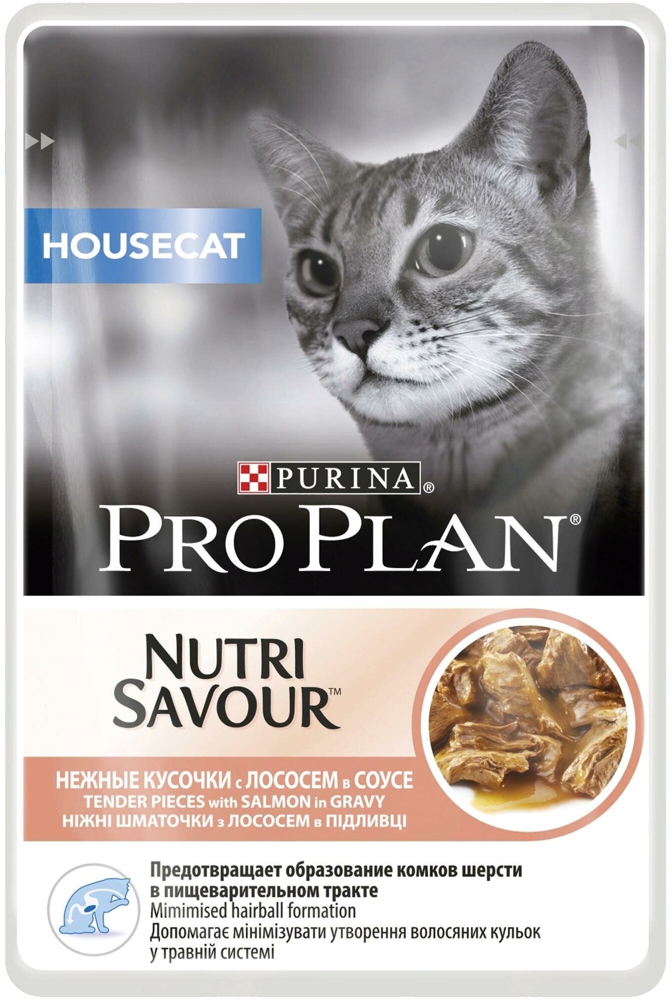 Корм для кошек PRO PLAN Housecat для домашних, с лососем в соусе пауч 85г (упаковка - 26 шт)