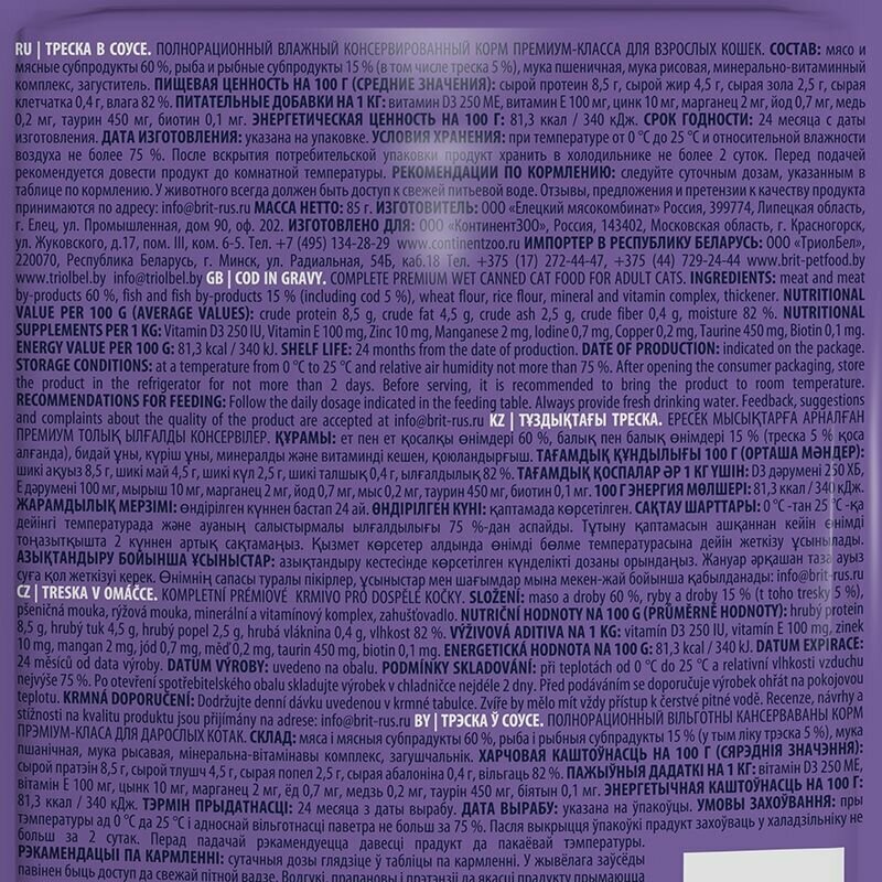 Ниже Вы можете прочитать отзывы на Корм для взрослых кошек BRIT Premium Треска в соусе 14шт.*85г, ознакомится с подробными характеристиками, посмотреть интересные обзоры и фотографии на Корм для взрослых кошек BRIT Premium Треска в соусе 14шт.*85г.
