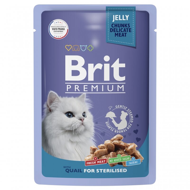 Корм Brit Premium Sterilised Quail (в желе) для стерилизованных кошек, с перепелкой, 85 г x 14 шт