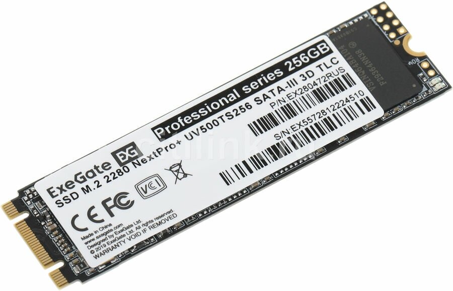 Накопитель SSD M.2 2280 256GB ExeGate NextPro+ UV500TS256 (SATA-III, 22x80mm, 3D TLC)