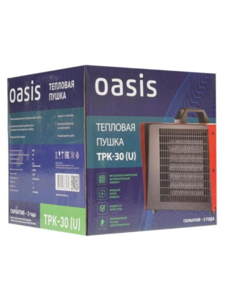 Тепловая пушка электрическая Oasis, модель TPK-30, 3000 Вт, до 30 кв. м