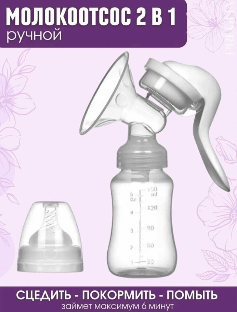 Молокоотсос ручной с бутылочкой 150 мл/механический/Подарок на рождение малыша интересное: