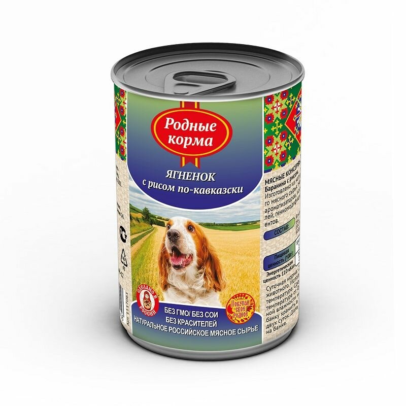 Родные корма консервы для собак Ягненок с Рисом По-Кавказски 9х410г