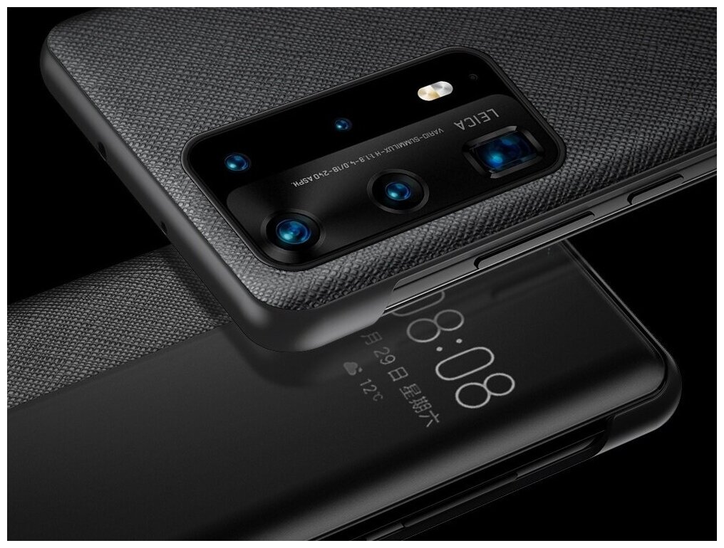 Чехол-кейс Чехол.ру для Huawei P40 Pro из импортной кожи с боковым окном предпросмотра черный интересное: