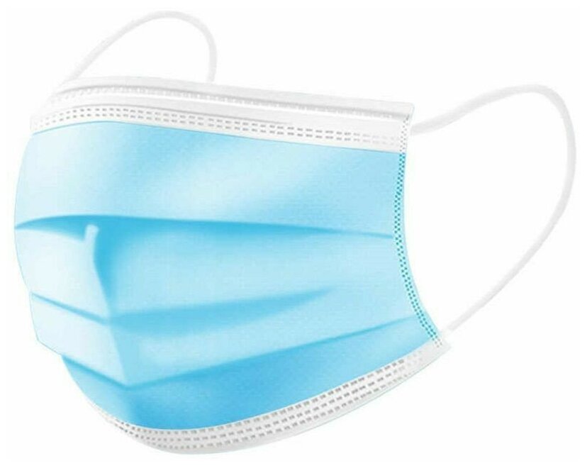 Маска медицинская 3-х слойная голубая, 50 штук в упаковке.