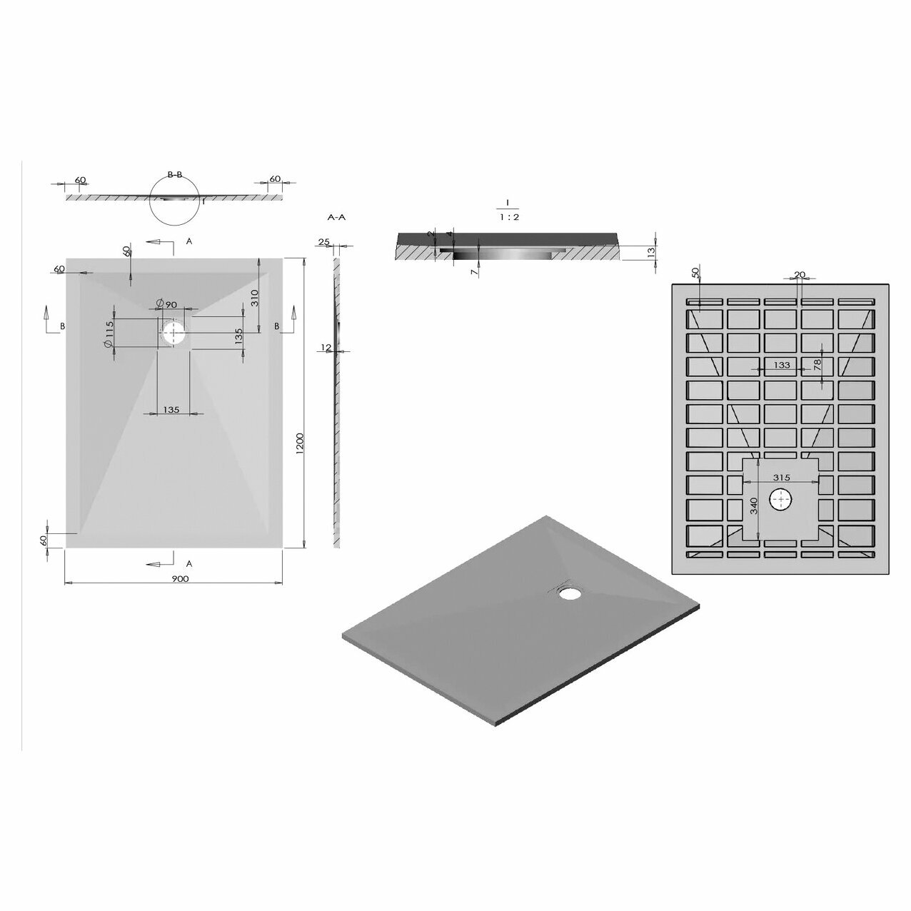 Поддон для душа из искусственного камня VST-4SR9012A, 1200*900*25, антрацит