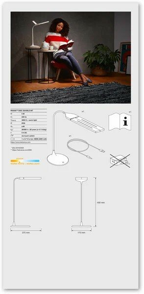 PANAN DISC DOUBLE WT 5W 3000K наст диск / батарея 220Lm 375*400*170mm DIM - свет-к настольный LEDV