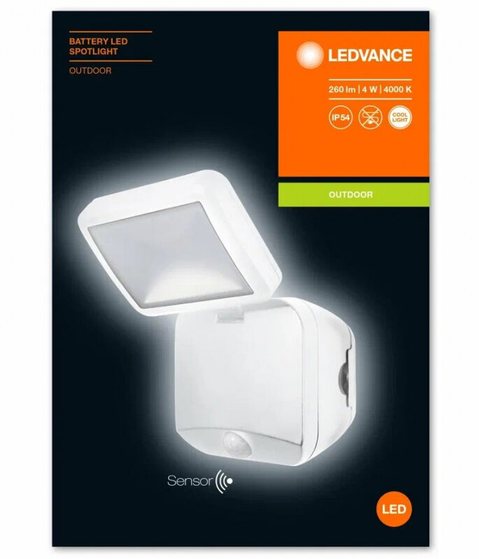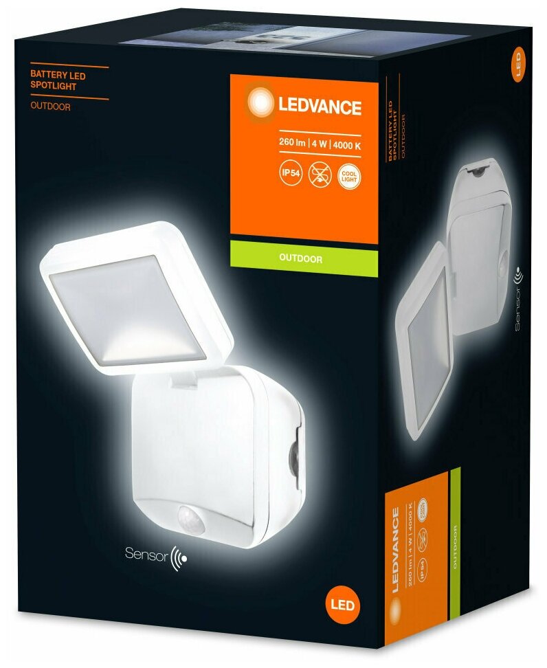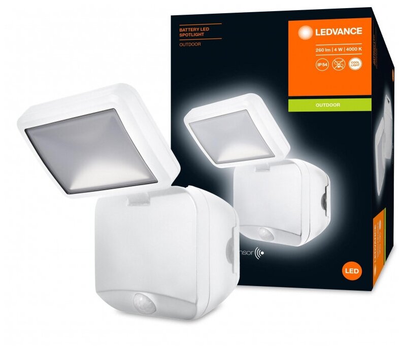 Светильник светодиодный навесной уличный LEDVANCE SPORTLIGHT SINGLE (4058075227385) 215х40х250 мм 4 Вт 4000К холодный свет матовый IP54 белый с датчиком движения и света