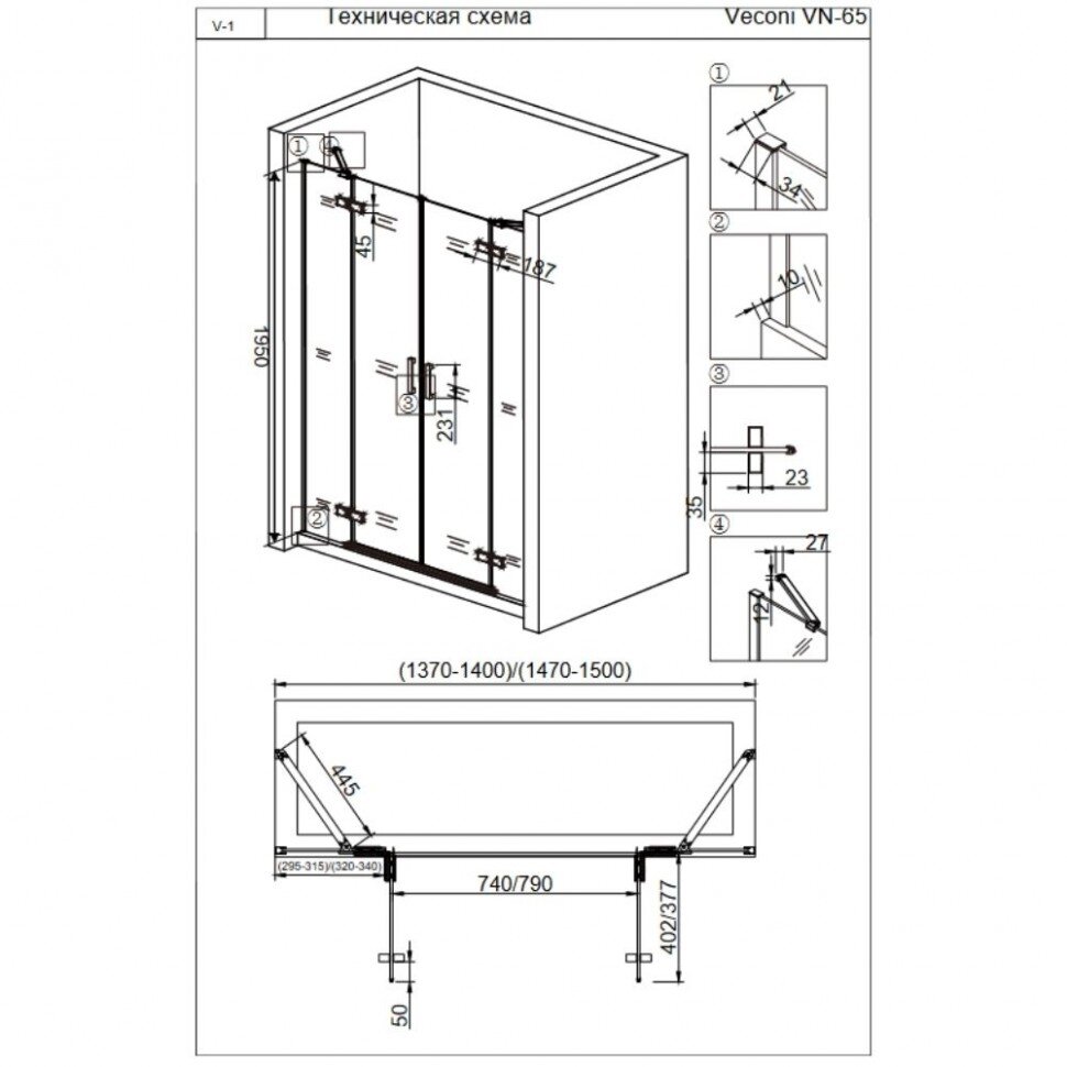 Душевая дверь Veconi VN-65 203x46