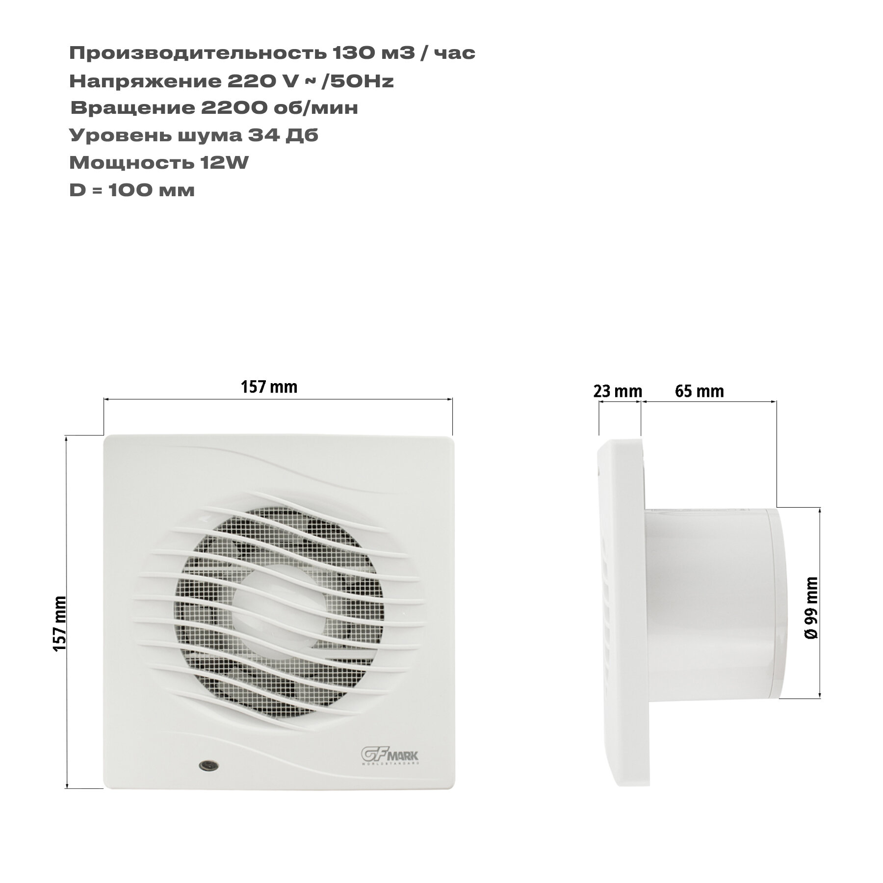 Вентилятор осевой / вытяжка в ванную / вытяжка в туалет d100 мм, белый