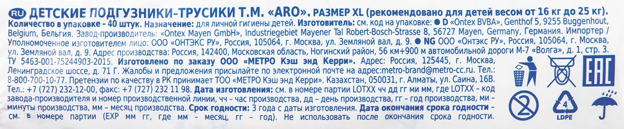 Трусики ARO XL 6 (16–25 кг), 40 шт. интересное: