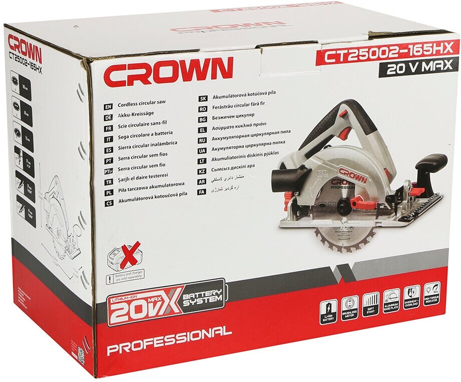 Аккумуляторная дисковая пила CROWN CT25002-165HX без аккум. и ЗУ
