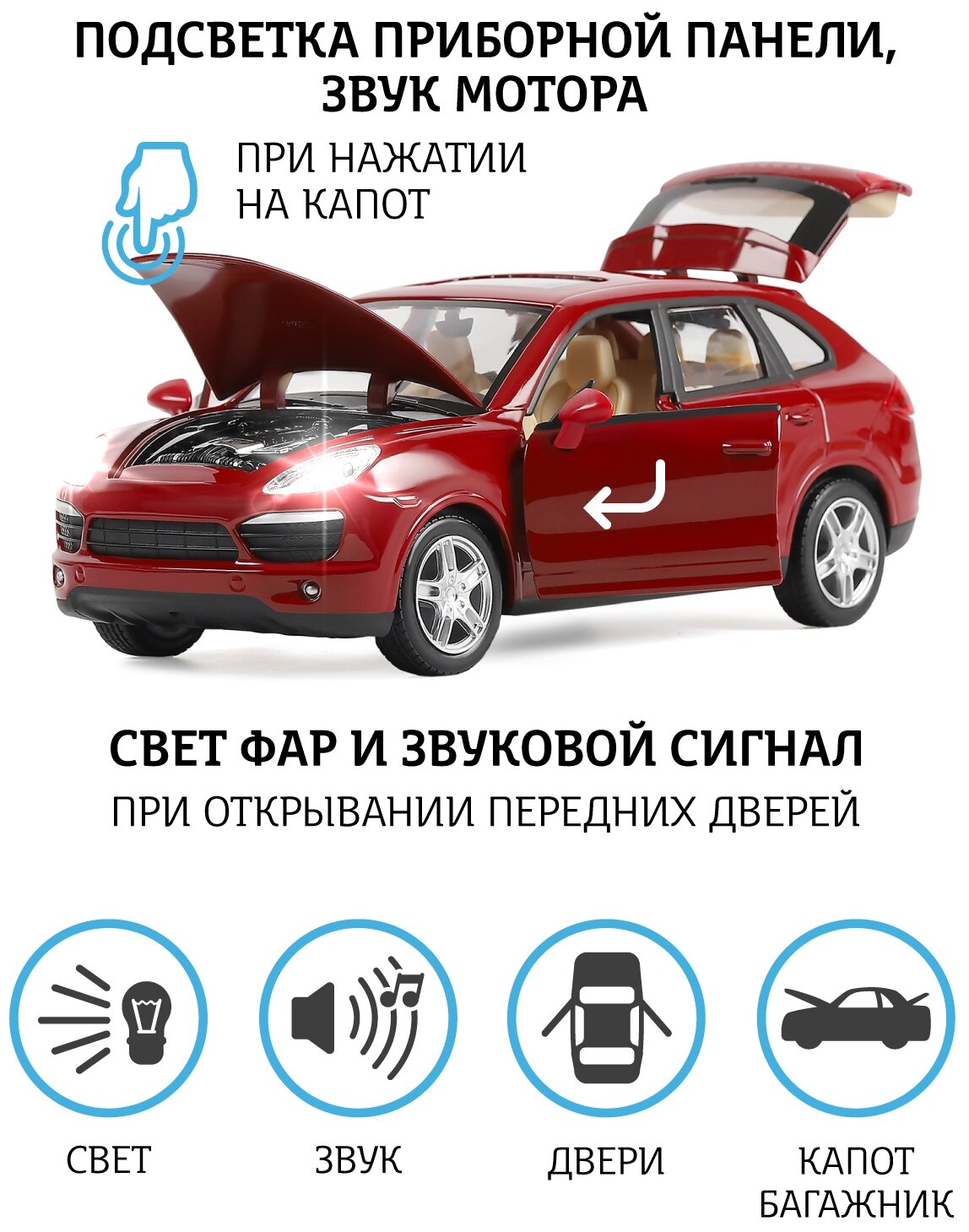 Машинка металлическая ТМ Автопанорама, Porsche Cayenne S, М1:24, свободный ход колес, свет, звук, JB1251131